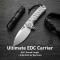 Le Manche Titanium intégral (titane gris) offre une solidité de grade aéronautique et une prise en main ergonomique pour les mains les plus larges. L'ouverture est d'une fluidité chirurgicale grâce aux roulements à billes céramique, activables via le flipper, le Thumb Stud (ergot de pouce) ou le système de pivot. Contrairement au modèle standard, cette édition limitée utilise un mécanisme Frame Lock en titane ultra-sécurisé. D'une longueur totale de 22,40 cm, ce Tundra est un véritable char d'assaut de poche.