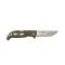 L'élément essentiel de ce couteau Finn Wolf, c'est bien sûr sa lame. La forme droppoint de cette dernière permet de découper facilement de la nourriture ou tout autre chose qui vous passera sous la main. Outre son efficacité due à la qualité de l'acier japonais AUS8A qui offre une dureté de 57 HRC, celle-ci est conçue avec une finition satinée. Le manche de ce couteau Bushcraft est en Griv-Ex de couleur olive, il facilitera une prise en main sûre et solide. Léger avec ses 97 g. et symétrique, ce couteau de poche conviendra aussi bien aux droitiers qu'aux gauchers.