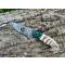 Couteau COQ FRANCAIS damas forgé LLF corne de bélier 20cm turquoise
