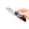 Couteau CRKT « ATTABOY », lame acier D2 finition « stonewashed » avec « front flipper », système d'ouverture assistée, système de blocage « Deadbolt », à onglet traversant, manche 9,5 cm nylon/fibre de verre noir et bleu, avec clip.