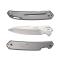 Couteau CRKT « BONA FIDE », lame acier D2 satiné avec « flipper » et cran intérieur, manche 12 cm aluminium gris, avec clip.