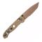 Lame semi-dentée forme tanto en acier D2 (dureté 60 HRC) revêtement EDP marron avec ergot de pouce ambidextre pour ouverture une main et avec système de blocage "Crossbar Lock", d'une longueur de 10 cm.