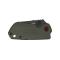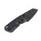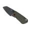 Couteau CRKT « OVERLAND COMPACT », lame forme tanto acier D2 à cran intérieur et à bouton double, manche 8 cm G10 vert au recto et acier au verso, entretoise et pivot anodisés orange, avec clip. Finition « blackwash »