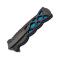 Couteau Herbertz série CJH n°44008, lame noire avec "flipper" et à cran intérieur, manche 12 cm ABS noir noeud celtique, platines bleues, clip.