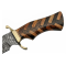 Couteau de Chasse Bowie Hunter Braided Sawback Damas Lame 256 Couches Manche Bois Etui Cuir DM1221