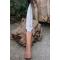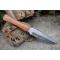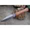 Longueur du manche 10.5cm - Longueur de la lame 13.5cm - Longueur du tranchant 11.5cm - Lame en Acier damas 256 couches - Lame de type dague double tranchant - Construction d'une seule pièce - Full tang - Plaquettes du manche en bois - Fabrication Artisanale - Les dessins de la lame sont uniques comme une empreinte - Etui simili cuir