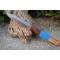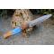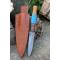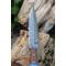 Longueur du manche 11.5cm - Longueur de la lame 10.5cm - Longueur du tranchant 9.5cm - Lame en Acier damas 256 couches - Lame de type dague double tranchant - Construction d'une seule pièce - Full tang - Plaquettes du manche en bois & résine - Fabrication Artisanale - Les dessins de la lame sont uniques comme une empreinte - Etui cuir