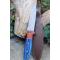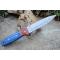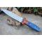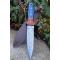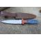 Couteau de Chasse Dague Lame Façon Damas Lazer Manche 2 Bois Etui Cuir Fabrication Artisanale