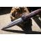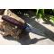 Couteau Sheffield Sgian Dubh à lame fixe - Longueur totale 23.5cm - Longueur de lame 12.5cm - Epaisseur de lame 6mm - Lame en acier carbone façon damas - Gravures laser - Double Tranchant - Construction d'une seule pièce - Full Tang - Manche en micarta - Trou dans le manche - Etui en cuir