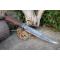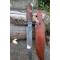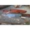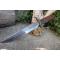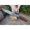 Longueur du manche 14cm - Longueur de la lame 25cm - Tranchant de 23.cm - Lame en Acier damas 256 couches - La soie traverse le manche - Lame de type Trailing point recurve - Grosse Garde en damas - Manche en bois - Pommeau en damas - Fabrication Artisanale - Les dessins de la lame sont uniques comme une empreinte - Etui cuir