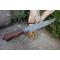 Couteau de Chasse Damas Garde & Lame 256 Couches Trailing Point Manche Bois Fab Artisanale Etui Cuir