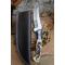 Longueur du manche 12cm - Longueur de la lame 11.5cm - Lame en Acier damas 256 couches - Lame de type clip point - Construction d'une seule pièce - Full tang - Plaquettes du manche en os avec dragon - Mitres en résine - Fabrication Artisanale - Les dessins de la lame sont uniques comme une empreinte - Etui simili cuir