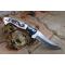 Couteau de Chasse Damas Lame 256 Couches Manche OS Scrimshaw Dragon Fabr Artisanale Etui Simili