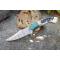 Couteau de Chasse Damas Lame 256 Couches Manche OS Scrimshaw Loup Fabr Artisanale Etui Simili