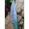 Longueur du manche 11cm - Longueur de la lame 11cm - Lame en Acier damas 256 couches - Lame de type clip point - Construction d'une seule pièce - Full tang - Plaquettes du manche en os avec loup - Mitres en résine - Fabrication Artisanale - Les dessins de la lame sont uniques comme une empreinte - Etui simili cuir