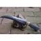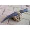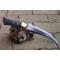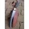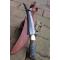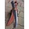 Couteau Faucille lame damas - Longueur du manche 12cm - Confortable même avec des gants - Longueur de la lame 20cm - Epaisseur 5mm - Lame en Acier damas 256 couches - Lame de type faucille - Double tranchant - Construction d'une seule pièce - Full tang - Plaquettes du manche en micarta - Mitres en laiton - Fabrication Artisanale - Les dessins de la lame sont uniques comme une empreinte - Etui cuir