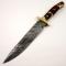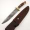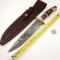 Couteau de Chasse Damas Plainsman Lame Acier 256 Couches Manche bois de Cerf Garde Laiton Etui Cuir DM1044