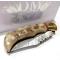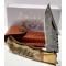 Couteau de Chasse Damas Pliant Lame Damas Manche Corne de Bélier Étui Cuir DM1385