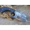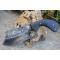 Couteau de chasse Bushcraft Survie à lame fixe - Longueur totale 20cm - Longueur de lame 9.5cm - Longueur du tranchant 8.5cm - Epaisseur de lame 5mm - Lame en acier carbone 1075 forgée - Dos de la lame guillochée - Lame type butcher plain edge - Construction d'une seule pièce - Full tang - Trou dans la lame pour une meilleur prise en main - Plaquettes du manche en micarta - Etui cuir - Fabrication artisanale