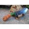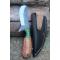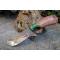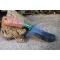 Couteau de chasse Bushcraft Survie à lame fixe - Longueur totale 20cm - Longueur de lame 9.5cm - Longueur du tranchant 8.5cm - Lame en acier carbone 1075 - Lame type drop point modifié plain edge - Construction d'une seule pièce - Full tang - Garde dans la lame - Plaquettes du manche en bois - Mitres en bois - Etui cuir - Fabrication artisanale