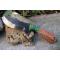 Couteau de Chasse Découpe Survie Lame Acier Carbone 1075 Manche Bois Etui Cuir Fabric Artisanale