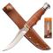 Couteau simple et efficace. Lame épaisse ce qui est de plus en plus rare sur des couteaux industriels et un manche en rondelles de cuir très agréable à manipuler. Grace à son pommeau, le couteau très bien équilibré. Un bon rapport qualité/prix.