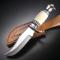 Couteau Frost Cutlery Black Hills. Longueur totale 24,76cm. Longueur de lame 12,70cm. Lame en acier 3Cr13 finition satin. Lame de type clip point. Plaquettes du manche en Os de buffalo. Garde & pommeau en nickel. Etui cuir marron.