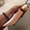 Couteau de Chasse Mexicain Tête De Rapace avec Étui en cuir Manche en OS