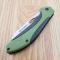 Longueur fermé 11.43cm. Longueur de lame 8.26cm. Lame en acier inox serrated finition satin. Plaquettes du manche black & green en polymère. Ouverture d'une main avec le thumb hole. Clip de poche. Sécurité linerlock