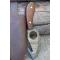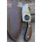 Le manche est habillé de Manche bois de rose poli, fixé par des rivets en acier, offrant une chaleur et une durabilité naturelles. L'ensemble est protégé par un étui cuir de haute qualité avec passant de ceinture.