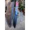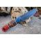 Couteau de Chasse Skinner Lame Acier Carbone 1055 Black Manche Résine Etui Cuir Fabric Artisanale