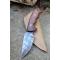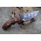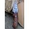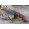 Couteau de Chasse Skinner Survie Lame Carbone 1055 Têtes de Mort Manche Bois Etui Simili Cuir Fabr Artisan