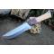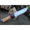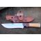 Couteau de chasse Bushcraft Survie à lame fixe - Longueur totale 31.5cm - Longueur de lame 17cm - Lame en acier carbone 1055 - Lame type drop point plain edge - Construction d'une seule pièce - Full tang - Plaquettes du manche en bois - Mitres en bois - Trou dans le manche pour dragonne - Etui cuir avec pochette - Fabrication artisanale