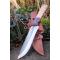 Couteau de Chasse Survie Buschraft Lame Carbone 1055 Manche Bois Etui Cuir Fabrication Artisanale