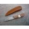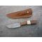 Couteau Chasse Table Acier Damas forgé à la main / manche bois précieux / corne Etui cuir 21cm Lame
