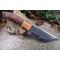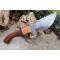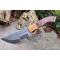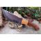 Couteau de Chasse Trakker Damas Grosse Lame 256 Couches Manche 2 Bois Fabric Artisanale Etui Cuir