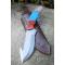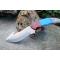 Couteau de Chasse à dépecer Crochet Lame Acier Carbone 1055 Manche Résine Etui Cuir Artisanat