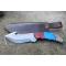 Couteau de Chasse à dépecer Crochet Lame Acier Carbone 1055 Manche Résine Etui Cuir Artisanat