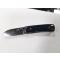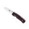 Couteau CITADEL « STAVANGER », lame acier N690Co à cran intérieur et à bouton, manche 9,5 cm noix de banksia avec inclusion de résine bleue/intercalaires rouges, ressort guilloché, pochette nylon.