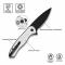 Le manche est conçu en Gray Aluminum (Aluminium Gris), offrant une esthétique sobre et technique. Sa conception ultra-fine garantit une légèreté exceptionnelle, faisant de ce couteau l'un des plus confortables à porter au quotidien. L'innovation majeure réside dans son mécanisme Button Lock : une simple pression permet un déploiement et une fermeture ultra-fluides. Monté sur des roulements à billes en céramique, le Kitefin offre une action rapide et sécurisée.