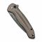 Le manche est conçu en Brownish Gray Aluminum (Aluminium Gris Brunâtre), une couleur sophistiquée qui apporte une chaleur naturelle au design métallique. Ce coloris unique met parfaitement en valeur les contrastes de la lame en acier damas. Sa silhouette ultra-fine et son poids plume en font un outil d'une discrétion absolue. L'innovation majeure réside dans son mécanisme Button Lock : l'ouverture et la fermeture se font d'une simple pression, offrant une manipulation d'une fluidité exemplaire sur roulements à billes en céramique.