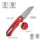Le manche de 12,29 cm est fabriqué en aluminium rouge anodisé, un matériau léger et durable qui offre une prise en main confortable. Le mécanisme Button Lock assure une sécurité optimale une fois la lame déployée, et son système de ressort sous le bouton empêche toute ouverture accidentelle. Le clip de poche réversible permet de transporter le couteau en position "Tip-Up" aussi bien pour les droitiers que pour les gauchers. Avec son poids de seulement 98,9 g et sa faible épaisseur, le Pragma Prime est facile à transporter au quotidien.