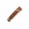 Le corps du couteau est doté d'une structure interne en aluminium qui le rend à la fois léger et durable. Les plaquettes en bois de zèbre (Zebra Wood) confèrent à chaque pièce un caractère unique et une touche d'élégance. Le mécanisme Bar Lock assure un verrouillage extrêmement sécurisé et facile à manipuler. L'ouverture à une main est rapide et fiable grâce au Thumb Stud (goupille de pouce).