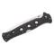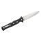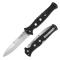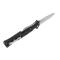 Cold Steel nous livre une version du stiletto italien sous stéroïdes, et contrairement aux versions automatiques italiennes faites dans des aciers 420 de basse qualité avec un profil de lames impossible à affûter, Cold Steel en fait un couteau utilisable avec un verrouillage de lames beaucoup plus solide et une gueule incroyable qui ne laisse pas indifférent. L'ouverture de la lame est très souple, un simple coup de poignet, une impulsion suffit à l'ouvrir. De plus, ce couteau dispose du système Emerson à ouverture en sortie de poche par friction sur le bord des vêtements.