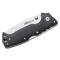 Cold Steel nous livre une version du stiletto italien sous stéroïdes, et contrairement aux versions automatiques italiennes faites dans des aciers 420 de basse qualité avec un profil de lames impossible à affûter, Cold Steel en fait un couteau utilisable avec un verrouillage de lames beaucoup plus solide et une gueule incroyable qui ne laisse pas indifférent. L'ouverture de la lame est très souple, un simple coup de poignet, une impulsion suffit à l'ouvrir. De plus, ce couteau dispose du système Emerson à ouverture en sortie de poche par friction sur le bord des vêtements.