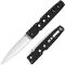 Cold Steel nous livre une version du stiletto italien sous stéroïdes, et contrairement aux versions automatiques italiennes faites dans des aciers 420 de basse qualité avec un profil de lames impossible à affûter, Cold Steel en fait un couteau utilisable avec un verrouillage de lames beaucoup plus solide et une gueule incroyable qui ne laisse pas indifférent. L'ouverture de la lame est très souple, un simple coup de poignet, une impulsion suffit à l'ouvrir. De plus, ce couteau dispose du système Emerson à ouverture en sortie de poche par friction sur le bord des vêtements.