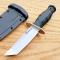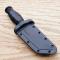 La lame de 8.9 cm est de forme Tanto classique, connue pour sa pointe renforcée et sa capacité à percer. Elle est fabriquée en acier inoxydable 8Cr13MoV avec une finition satinée. Cet acier offre un excellent équilibre entre solidité, résistance à la corrosion et facilité d'affûtage, avec une dureté estimée entre 57 et 59 HRC. Le manche est moulé en Kray-Ex noir (un caoutchouc synthétique texturé), offrant une adhérence exceptionnelle même dans des conditions humides, et complété par une garde en acier pour une sécurité accrue de la main. Le Mini Leatherneck est un couteau à lame fixe robuste et fiable. Il est livré avec un étui Secure-Ex (en polymère rigide) qui assure un maintien sûr et permet de multiples options de port (cou, ceinture ou botte).