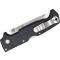 Cold Steel nous livre une version du stiletto italien sous stéroïdes, et contrairement aux versions automatiques italiennes faites dans des aciers 420 de basse qualité avec un profil de lames impossible à affûter, Cold Steel en fait un couteau utilisable avec un verrouillage de lames beaucoup plus solide et une gueule incroyable qui ne laisse pas indifférent. L'ouverture de la lame est très souple, un simple coup de poignet, une impulsion suffit à l'ouvrir. De plus, ce couteau dispose du système Emerson à ouverture en sortie de poche par friction sur le bord des vêtements.