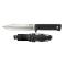 Le design comprend un manche en Kray-Ex® texturé, qui assure une prise en main solide et sécurisée, même par temps humide. Sa lame à profil Clip Point est idéale pour percer et trancher avec efficacité. L'épaisseur de la lame de 5 mm confère au SRK une solidité remarquable, tandis que la demi-garde fixe assure une protection accrue.
