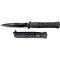 Cold Steel nous livre une version du stiletto italien sous stéroïdes, et contrairement aux versions automatiques italiennes faites dans des aciers 420 de basse qualité avec un profil de lames impossible à affûter, Cold Steel en fait un couteau utilisable avec un verrouillage de lames beaucoup plus solide et une gueule incroyable qui ne laisse pas indifférent. L'ouverture de la lame est très souple, un simple coup de poignet, une impulsion suffit à l'ouvrir. De plus, ce couteau dispose du système Emerson à ouverture en sortie de poche par friction sur le bord des vêtements.